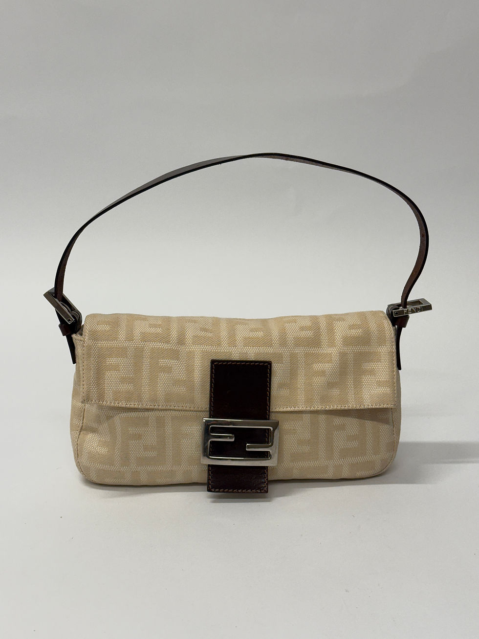FENDI BAGUETTE CREAM & BROWN LEATHER BAG