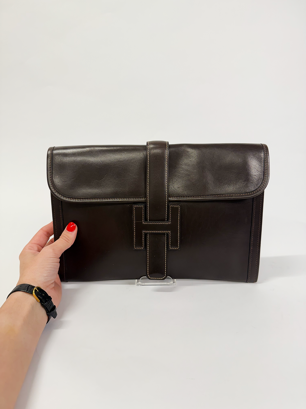 HERMÈS JIGE BROWN LEATHER CLUTCH
