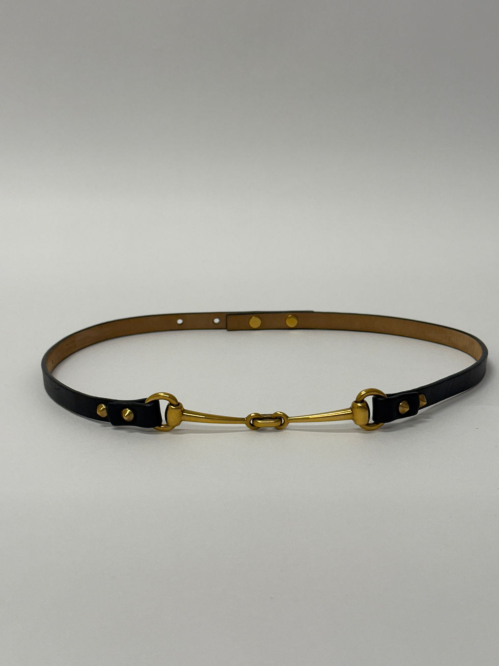 GUCCI BLACK LEATHER SLIM GOLD HORSEBIT BELT S