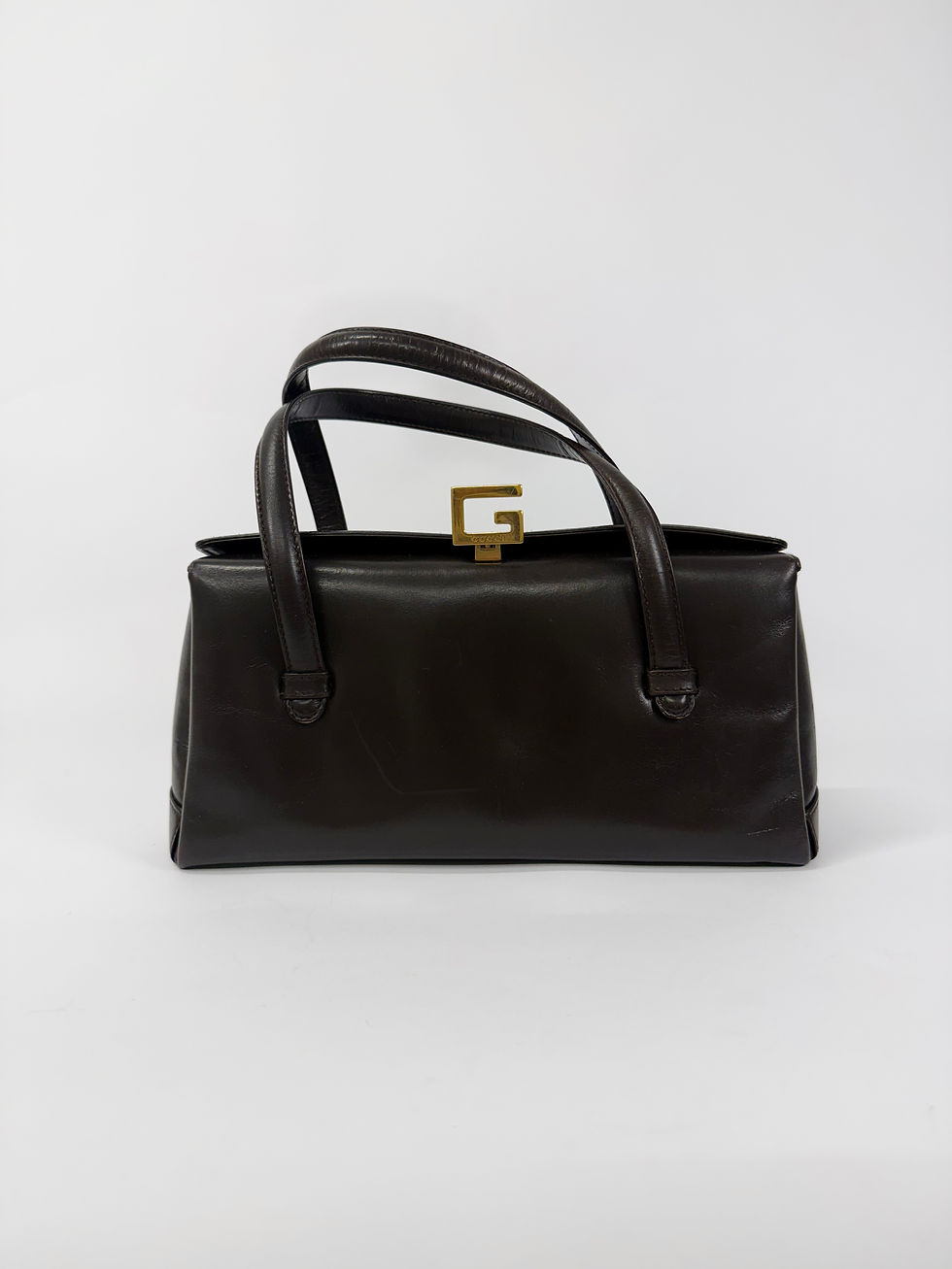 VINTAGE GUCCI BROWN LEATHER G BAG SMALL